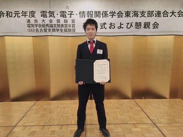 B4 横田真志:電気学会東海支部長賞を受賞。