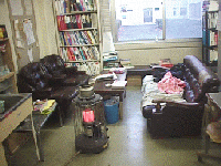 | 居室。ご飯を食べたり,くっちゃべったり, 仮眠をとったりするところ。エアコンがない のが弱点である。 |